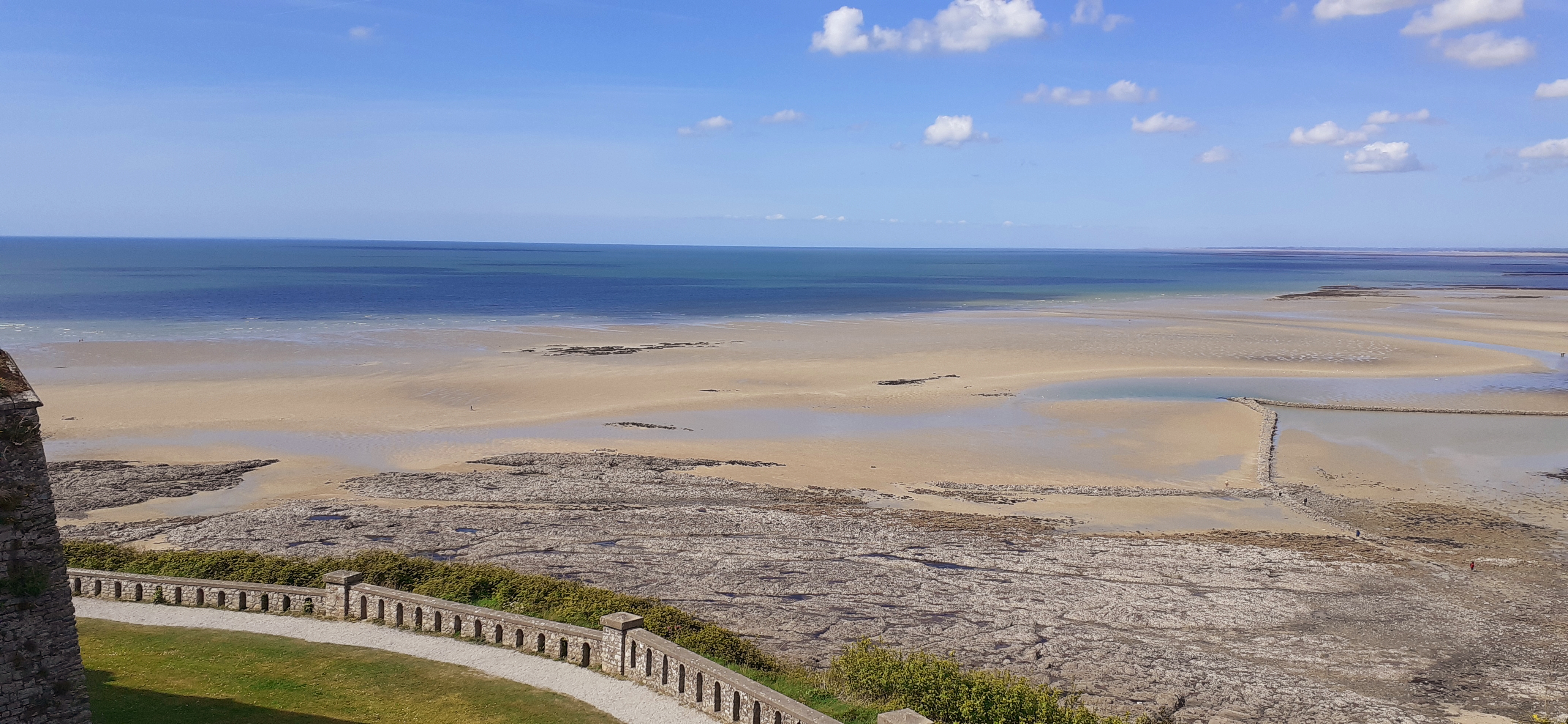 Quelques cumulus ou humilis. Vent modéré. Marée basse, les grands espaces ! Beaucoup de monde à granville. |