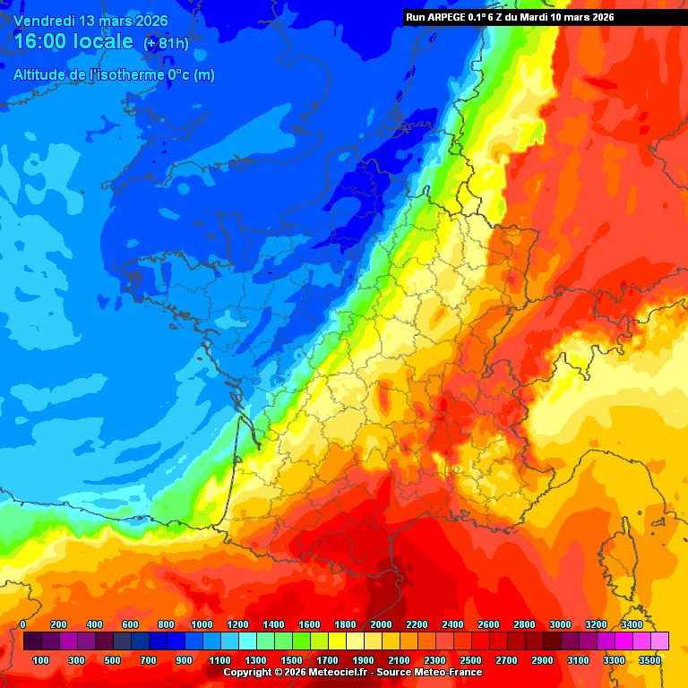 Run 0h Run 6h Run 12h Run 18h > 24heures Précisions sur la carte : L'altitude de l'Isotherme 0° n'existe pas comme champ direct dans les données que nous avons en Open-Data, donc l'isotherme est calculée avec la température à tous les niveaux de pression. On prend l'altitude la plus haute où la température interpolée est égale à 0°C