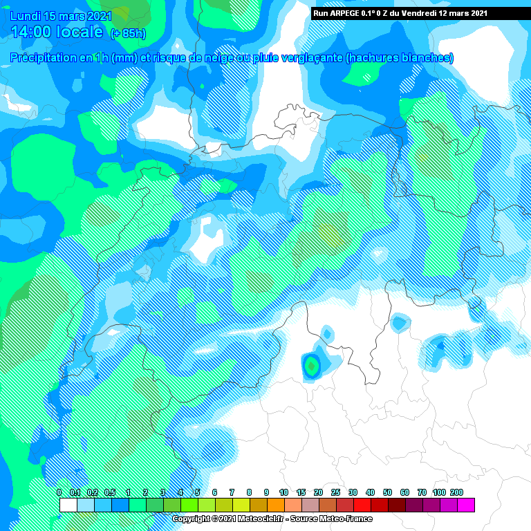 Echéance max. : 102h pour le 00Z, 72h pour le 06Z, 114h pour le 12Z, 60h pour le 18Z