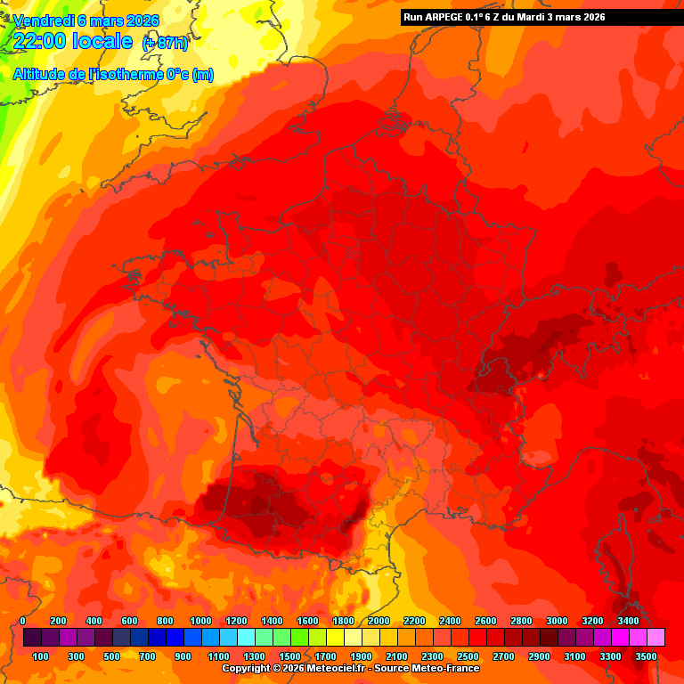 Précisions sur la carte : L'altitude de l'Isotherme 0° n'existe pas comme champ direct dans les données que nous avons en Open-Data, donc l'isotherme est calculée avec la température à tous les niveaux de pression. On prend l'altitude la plus haute où la température interpolée est égale à 0°C