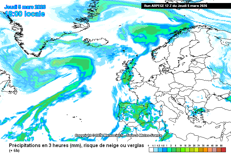 Précisions : Ces cartes présentent les données du modèle ARPEGE 0.25° de Météo-France. Les cartes sont réactualisées rapidement en temps réel à partir de 4h00, 11h00, 16h00 et 23h00. Echéance max. : 102h pour le 00Z, 06Z et 18Z, 114h pour le 12Z Merci à Météo-France pour la disposition de ces données en Open-Data (licence Etalab)