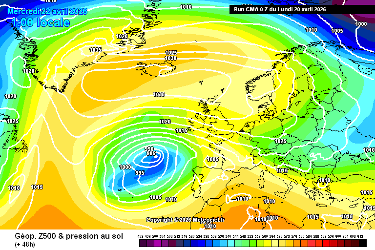 Ces cartes présentent les données du modèle CMA chinois. Les runs de 0z et 12z vont jusqu'à 240h. Les cartes sont réactualisées à partir de 6h pour le run de 00Z et 18h pour le run de 12Z, elles ont une résolution de 0.28° . Attention : les fichiers de données sont très volumineux donc l'actualisation des cartes prend beaucoup de temps (jusqu'à 4h pour un run).