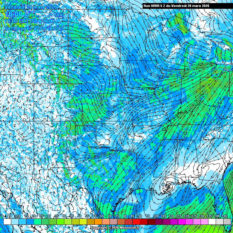 Ces cartes présentent les prévisions du modèle à maille fine HRRR Etats-Unis (High Resolution Rapid Refresh) basé sur WRF pour les prévisions immédiates qui est généré toutes les heures. La résolution est de 3km. Le calcul et la génération des cartes prennent généralement 1h pour une échéance de 18h (et 36h pour les runs de 00Z, 06Z, 12Z et 18Z)