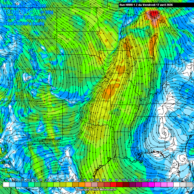 Ces cartes présentent les prévisions du modèle à maille fine HRRR Etats-Unis (High Resolution Rapid Refresh) basé sur WRF pour les prévisions immédiates qui est généré toutes les heures. La résolution est de 3km. Le calcul et la génération des cartes prennent généralement 1h pour une échéance de 18h (et 36h pour les runs de 00Z, 06Z, 12Z et 18Z)