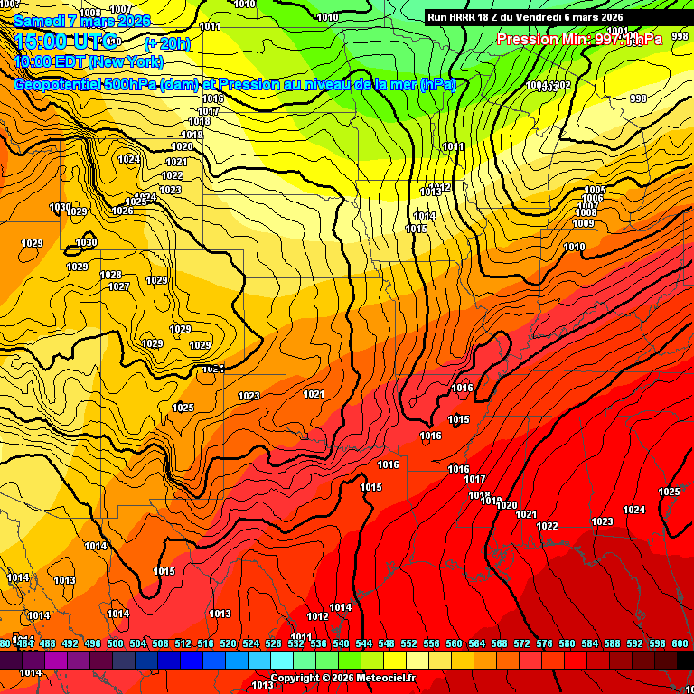 Ces cartes présentent les prévisions du modèle à maille fine HRRR Etats-Unis (High Resolution Rapid Refresh) basé sur WRF pour les prévisions immédiates qui est généré toutes les heures. La résolution est de 3km. Le calcul et la génération des cartes prennent généralement 1h pour une échéance de 18h (et 36h pour les runs de 00Z, 06Z, 12Z et 18Z)