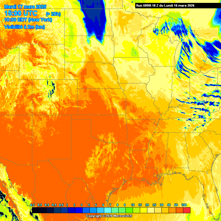 Ces cartes présentent les prévisions du modèle à maille fine HRRR Etats-Unis (High Resolution Rapid Refresh) basé sur WRF pour les prévisions immédiates qui est généré toutes les heures. La résolution est de 3km. Le calcul et la génération des cartes prennent généralement 1h pour une échéance de 18h (et 36h pour les runs de 00Z, 06Z, 12Z et 18Z)