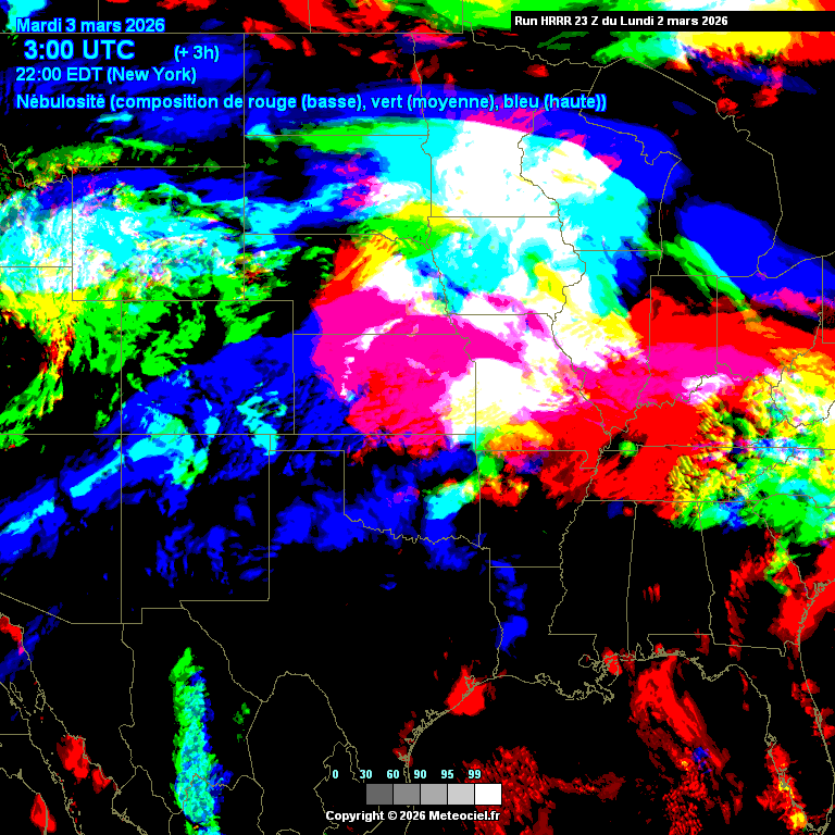 Cartes du modèle HRRR Etats-Unis Tornado Alley 3km
