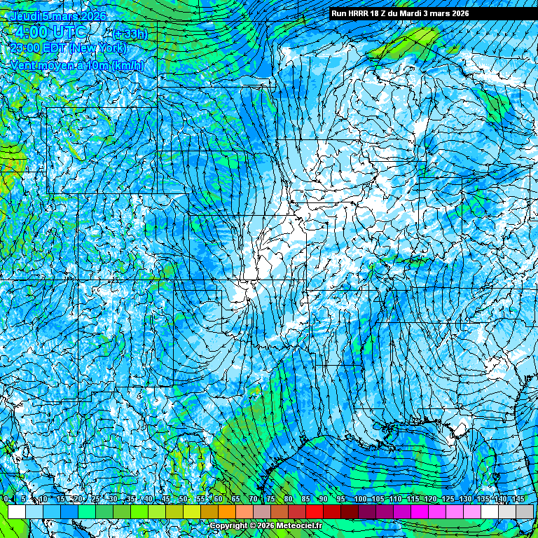 Ces cartes présentent les prévisions du modèle à maille fine HRRR Etats-Unis (High Resolution Rapid Refresh) basé sur WRF pour les prévisions immédiates qui est généré toutes les heures. La résolution est de 3km. Le calcul et la génération des cartes prennent généralement 1h pour une échéance de 18h (et 36h pour les runs de 00Z, 06Z, 12Z et 18Z)