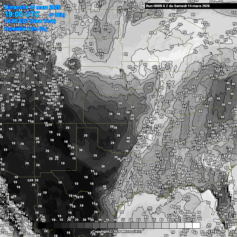 Ces cartes présentent les prévisions du modèle à maille fine HRRR Etats-Unis (High Resolution Rapid Refresh) basé sur WRF pour les prévisions immédiates qui est généré toutes les heures. La résolution est de 3km. Le calcul et la génération des cartes prennent généralement 1h pour une échéance de 18h (et 36h pour les runs de 00Z, 06Z, 12Z et 18Z)