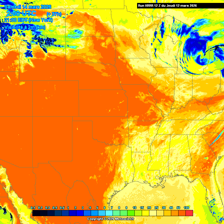 Ces cartes présentent les prévisions du modèle à maille fine HRRR Etats-Unis (High Resolution Rapid Refresh) basé sur WRF pour les prévisions immédiates qui est généré toutes les heures. La résolution est de 3km. Le calcul et la génération des cartes prennent généralement 1h pour une échéance de 18h (et 36h pour les runs de 00Z, 06Z, 12Z et 18Z)
