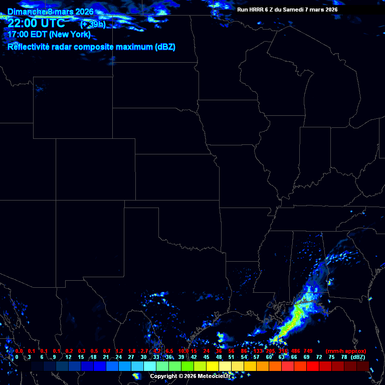 Ces cartes présentent les prévisions du modèle à maille fine HRRR Etats-Unis (High Resolution Rapid Refresh) basé sur WRF pour les prévisions immédiates qui est généré toutes les heures. La résolution est de 3km. Le calcul et la génération des cartes prennent généralement 1h pour une échéance de 18h (et 36h pour les runs de 00Z, 06Z, 12Z et 18Z)