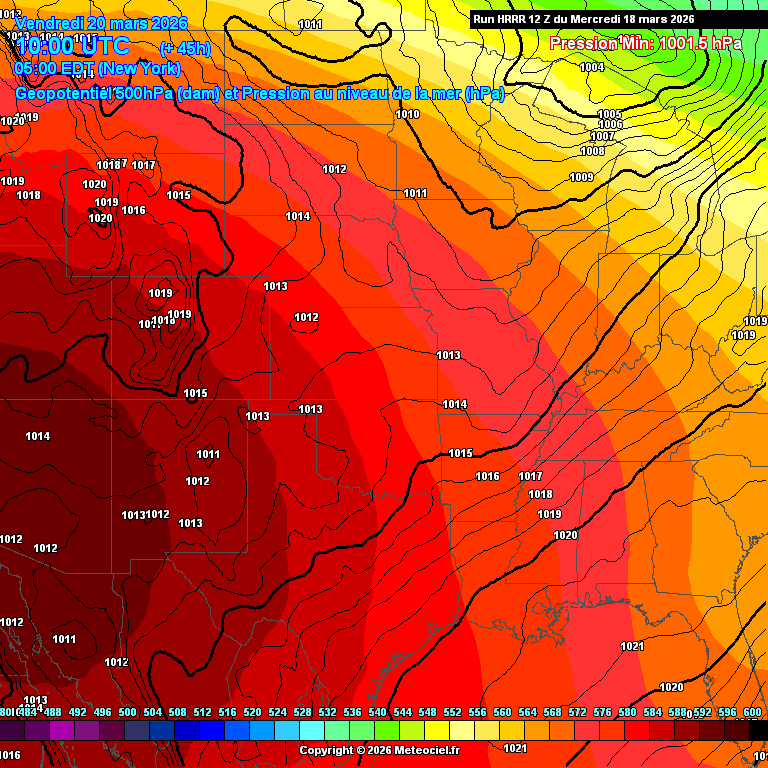 Echéance : 18h en général, et 48h pour les runs de 00Z, 06Z, 12Z et 18Z