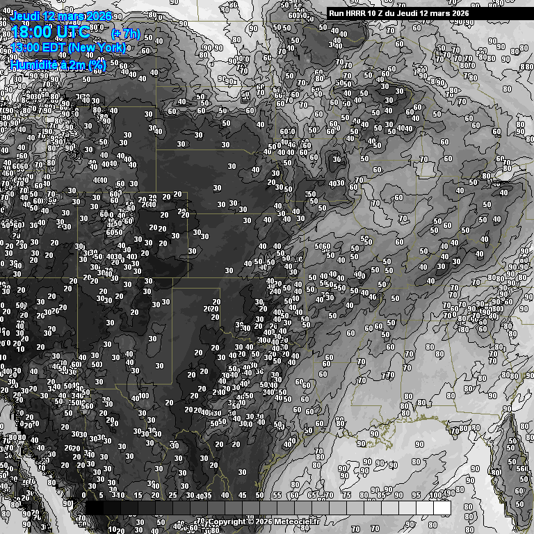 Ces cartes présentent les prévisions du modèle à maille fine HRRR Etats-Unis (High Resolution Rapid Refresh) basé sur WRF pour les prévisions immédiates qui est généré toutes les heures. La résolution est de 3km. Le calcul et la génération des cartes prennent généralement 1h pour une échéance de 18h (et 36h pour les runs de 00Z, 06Z, 12Z et 18Z)