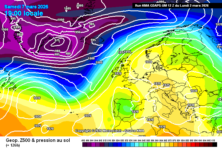 Ces cartes présentent les données du modèle GDAPS-UM coréen du KMA. Il est basé sur le modèle Unified Model d'UKMO. Les runs de 0z et 12z vont jusqu'à 288h avec une résolution de 10km environ. Les cartes sont réactualisées à partir de 6h pour le run de 00Z et 18h pour le run de 12Z.